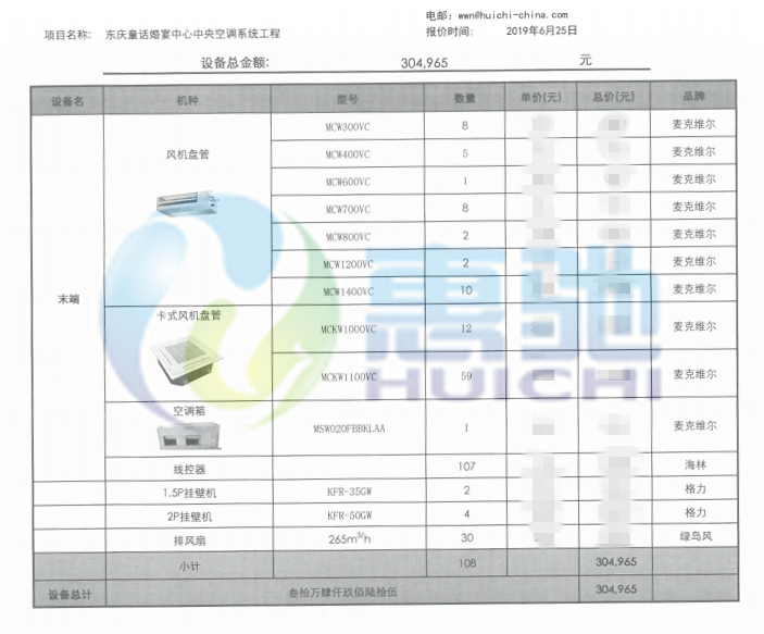 項目內(nèi)容:麥克維爾風機盤管設(shè)備安裝調(diào)試工程